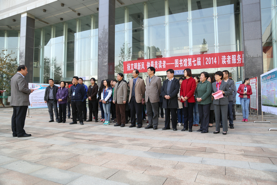 陈伟书记在开幕式上致辞,祝贺第七届图书馆读者服务月开幕,宣布图书馆“统借统还”新服务模式正式启动,并对精心策划筹备此次活动的图书馆工作人员表示感谢。他说,校图书馆为更好地实行“统借统还”的服务模式,不仅添置了两台自助借还设备,并更新了门禁及防盗设施,还推出了一系列人性化的服务措施,这些创新措施充分体现了图书馆“以人为本,读者至上”的服务理念。
