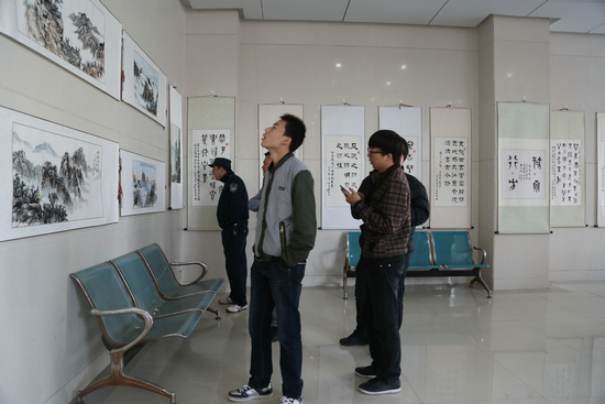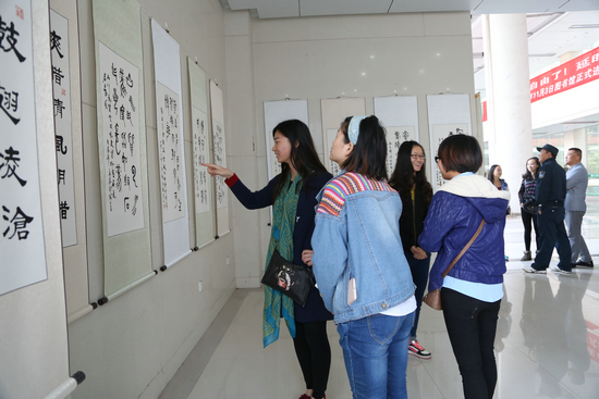 图为学生参观图书馆书画展 摄影:刘亚婷