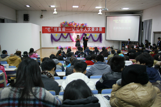 新闻中心讯(见习记者 龙娅芳 记者陈俊)12月1日晚,武汉工商学院经济与商务外语学院举办的首届“忆往直前——记忆牛人”大赛决赛在体育馆403室举行,来自经外学院、民族教育学院等学院的8支队伍展开冠军争夺战。现场气氛十分热烈,各学院纷纷带着自己的亲友团前来助阵。