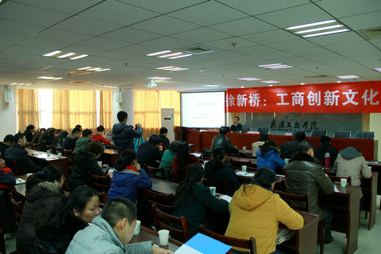 新闻中心讯(记者 刘姣姣)12月4日下午,在武汉工商学院第三会议室,武汉工商学院校长张金隆向华中科技大学管理学博士、湖北省发展战略规划办公室副主任、湖北省“鄂西圈”办公室专职副主任徐新桥颁发了客座教授聘书,聘请他为学校客座教授。徐新桥教授随即做了题为《工商创新文化》的精彩讲座。学校副校长刘腾红,各职能部门、各学院中层干部及部分教师、学生代表听取了讲座。会议由刘腾红副校长主持。