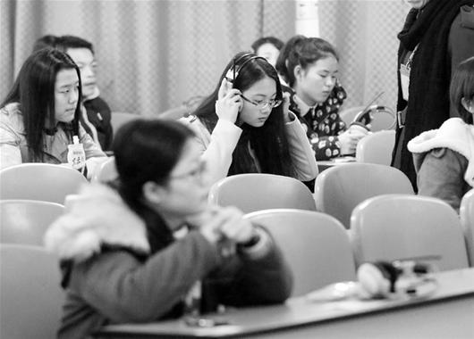 图为:四六级考试现场,考生进行听力考试 (记者刘蔚丹摄)