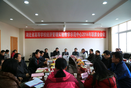 新闻中心讯(特约记者 胡玉玺)12月20日上午9:00,“湖北省高等学校经济管理实验教学示范中心2014年联席会议”在武汉工商学院实验楼211会议室召开。来自武汉大学、武汉理工大学、华中师范大学、华中农业大学、中南财经政法大学、中南民族大学、湖北大学、武汉科技大学、湖北工业大学、武汉轻工大学、湖北经济学院、江汉大学、长江大学、湖北师范学院、黄冈师范学院、武汉工商学院等16所高校管理学院、经济学院、商学院的院长,以及国家级、省级实验教学示范中心的主任共28位专家参加了会议,湖北省民办高等学校经管实验教学协作组轮值学校武昌理工学院列席了会议。武汉工商学院校长张金隆、副校长卢炎生参加会议。湖北省教育厅高教处邓立红处长应邀出席会议并作重要讲话。会议由武汉工商学院经济管理实验教学中心负责人毛志山教授主持。