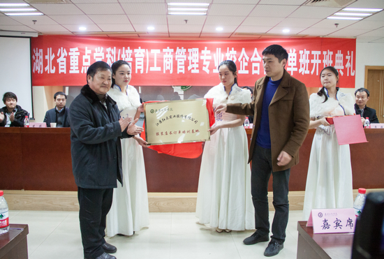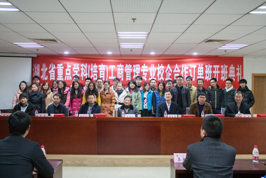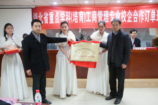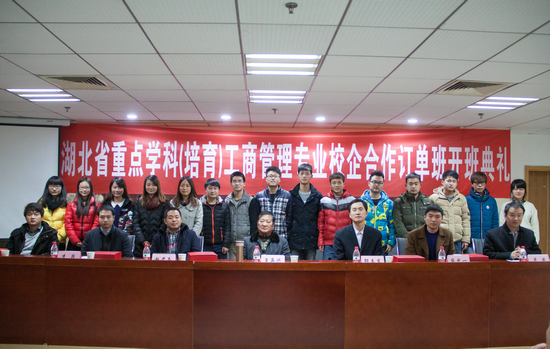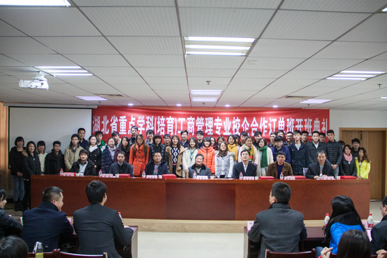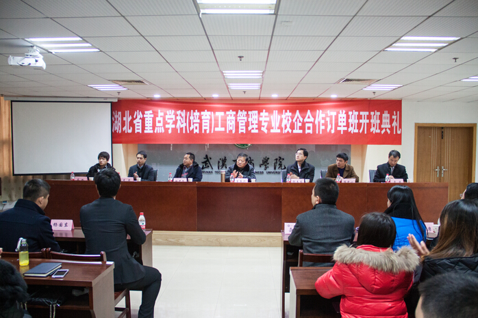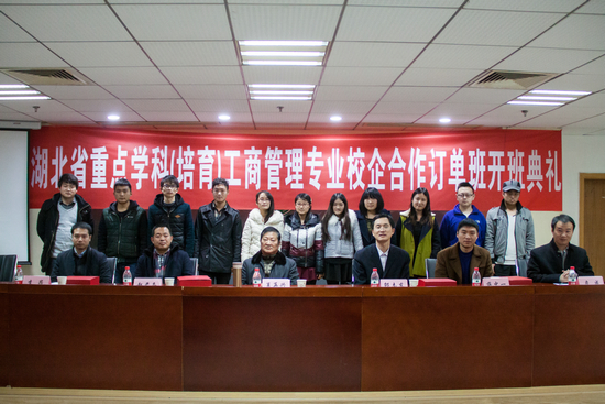典礼上,武汉工商学院管理学院工商管理专业与江苏京东信息技术有限公司、四川海底捞餐饮管理有限公司、江苏红豆实业股份公司、保利(武汉)物业公司联合分别签订客服管理、连锁经营主管、服装店长、物业管理培训生订单班协议,并举行揭牌仪式,该校工商管理专业134名大三学生成为4个订单班学生。江苏红豆实业股份有限公司还向武汉工商学院赠送2万元的奖励基金。