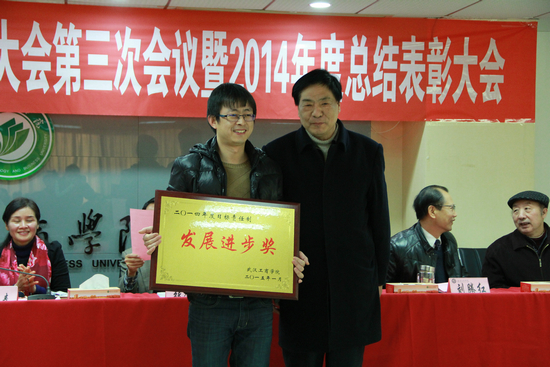 图为卢炎生副校长为发展进步单位颁奖 摄影:王铖焱