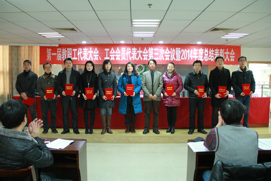 新闻中心讯(记者 陈俊)1月17日上午,武汉工商学院2014年度总结表彰大会在综合楼第三会议室隆重举行。该校董事长彭秀春,校长张金隆,校党委书记陈伟,党委副书记向太斌,副校长卢炎生、刘腾红、桂裕清,特聘教授夏再兴及学校顾问陶梅生等领导出席会议,学校各获奖单位及个人参加会议。会议由向太斌副书记主持。