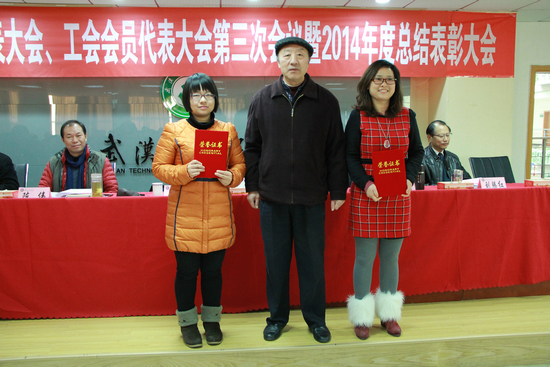授予各单位“标志性成果奖”共11项:学校办公室、发展规划与政策研究办公室等,为学校更名为“武汉工商学院”做出重要贡献;管理学院等申报的湖北商务服务发展研究中心获批为湖北省人文社科重点研究基地;文法学院获批中宣部舆情直报点,湖北网络社会发展研究中心获批湖北省委宣传部舆情研究基地;公共基础课部为学校被授予“全国啦啦操实验高校”做出突出贡献;实验教学中心经济管理实验教学分中心获评2014年湖北高校省级重点实验教学示范中心;文法学院徐明老师荣获“湖北省青年英才”称号;艺术与设计学院承接企业合作项目,经费额度创学校历史新高;电子商务学院指导学生在第四届全国大学生电子商务“创新、创意及创业”挑战赛中获得全国特等奖和最佳创业奖;信息工程学院指导学生在第五届“蓝桥杯”全国软件和信息技术专业人才大赛中获得全国二等奖、三等奖各1项;经济与商务外语学院英语专业四级、八级一次性通过率高出全国高校通过率和民办、独立高校通过率;环境与生物工程学院指导学生获“金川杯”第七届大学生节能减排社会实践与科技竞赛全国三等奖3项。