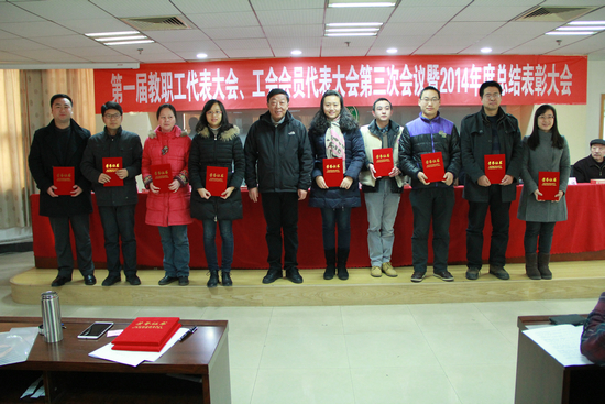 图为陈伟书记为2014年考核优秀单位颁奖 摄影:王铖焱