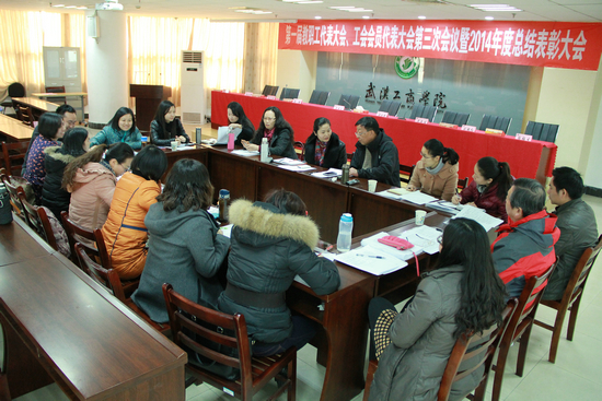 新闻中心讯(记者 陈俊)1月17日下午,武汉工商学院第一届教职工代表大会暨工会会员代表大会第三次会议圆满完成各项议程后,在第三会议室胜利闭幕。该校董事长彭秀春,校长张金隆,校党委书记陈伟,党委副书记向太斌,副校长卢炎生、刘腾红、桂裕清,特聘教授夏再兴及学校顾问陶梅生出席会议,全体“两代会”代表参加会议。会议由卢炎生副校长主持。