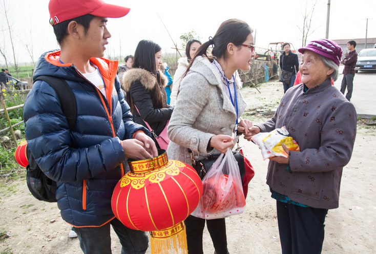 “我的儿子、孙子都在外面打工、上学,平时就是一个人在家里,元宵节也不过,今天你们来我很高兴啊,感谢共产党的好政策……”村里的空巢老人刘婆婆高兴地接过志愿者们送过来的汤圆。
