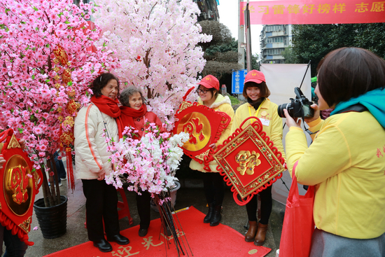 图为青协志愿者为社区居民拍摄幸福照 林典摄