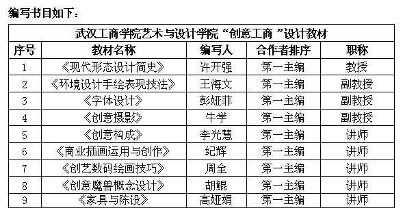 新闻中心讯(特约记者 罗筱芳)3月30日下午,武汉工商学院艺术与设计学院与合肥工业大学出版社正式签订“创意工商”设计系列教材编著出版合同,签约仪式在艺术楼408办公室举行。