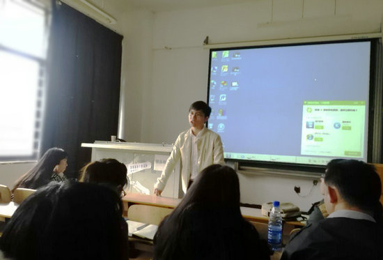 湖北广播电视台记者吴宝洪为武汉工商学院学生记者讲授如何做好电视新闻节目