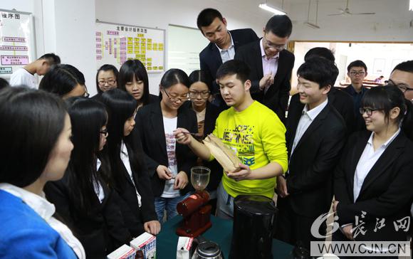 图为同学们在观看咖啡的制作过程 摄影:熊晋