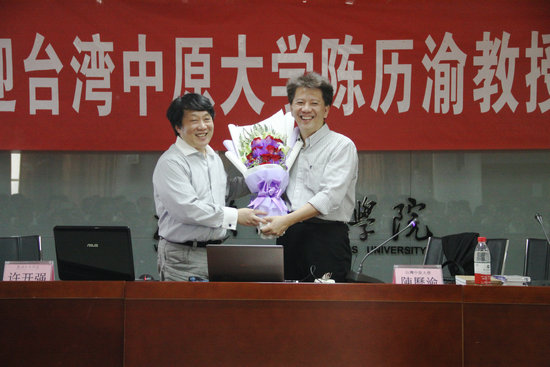 图为许开强教授欢迎陈历渝博士来校讲学 摄影:杨文婷