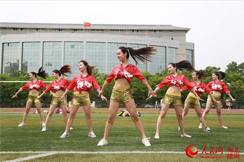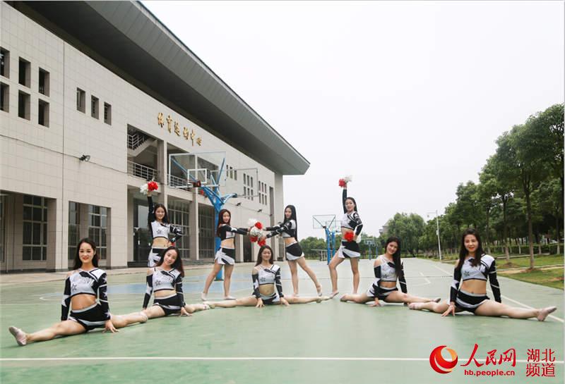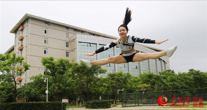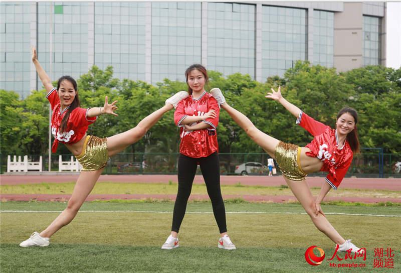 武汉5月15日电(通讯员罗袁璐 王铖焱 林倩 摄) 13日,武汉工商学院舞蹈啦啦队的一组“一字马”图片被该校官方微博、微信和贴吧发出后迅速爆红网络,截止14日上午10:30,官方微博阅读量突破4000次,各路微博大V和APP纷纷转发和点赞,读者们纷纷惊呼:被啦啦队队员们高超的柔韧度惊呆了!