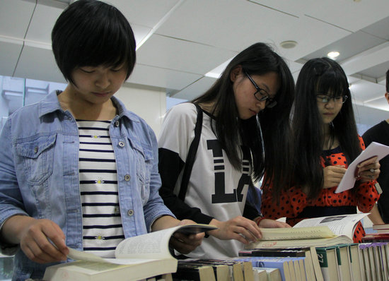 图为学生们在阅读抗日及反法西斯战争的相关书籍 林典摄