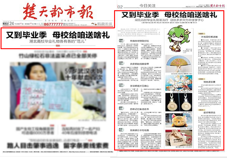 近年来,越来越多的高校,向毕业生们赠送礼物作为纪念。手绘明信片、创意布偶、鸳鸯扇、钥匙扣……楚天都市报记者连日采访发现,湖北高校的毕业礼物,各有各的范儿。