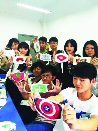 (记者杨佳峰 通讯员蓝静摄影报道) 在白口罩上画创意图形,老师根据图形的创意和学生绘画的水平进行打分得出考试成绩。昨日,武汉工商学院艺术与设计学院视觉传达专业创新班的29位学生都完成了《图形创意》课程的考试,交上了特殊的考试“试卷”——创意口罩。