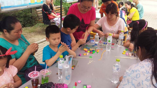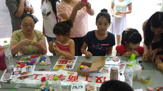 新闻中心讯(记者 刘姣姣)教孩子们用各色软陶制作各种小动物、小汽车、彩色蛋糕……6月1日是儿童节,中午,武汉工商学院外语艺术楼楼门口主干道旁边围满了学校艺术与设计学院的学生、教职工和各自的孩子们,她们在这里参加由艺术与设计学院和校工会组织的亲子活动。