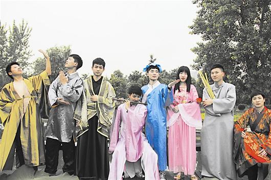 “走在学校里,好多人都穿着五四学生装在拍照,有撞衫的感觉。”武汉大学思想政治教育专业的小张说。进入毕业季,他们班16位同学都想用特别的方式纪念这段时光,女生们觉得民国时期女学生蓝衫黑裙的“小清新”打扮,与他们所学专业很切合,配合武大颇具历史感的建筑,绝对有Feel(感觉)。谁知,当他们换上五四学生装走在武大,才发现处处撞衫!“怪只怪,民国风太火了。”小张说。“穿越”毕业照,除了遍地的民国风,也有另辟蹊径的。这不,武汉工商学院里,一群身着“八仙”古装,手持“仙器”的学生,吸引了众人的目光。原来,这八名同学面临毕业做出了就业、创业、深造的不同选择。出点子的李凯表示,拍这组照片寓意着“大家将来在各自的道路上‘八仙过海各显神通’”。