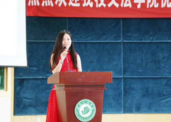 图为张艳华辅导员罗茵老师在会上讲话 摄影:刘亚婷