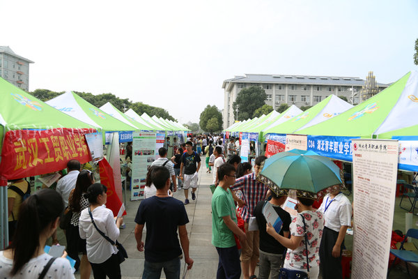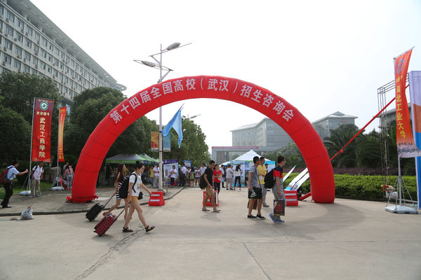 新闻中心讯(记者 蓝静 罗袁璐 刘琪 刘亚婷)6月23日是2015年高考成绩揭榜首日,武汉晨报联合湖北省教育学会共同举办的第十四届全国高校(武汉)招生咨询会在武汉工商学院拉开帷幕。西安交通大学、北京师范大学、南开大学、华中师范大学、兰州大学等128所全国各批次高校齐聚该校摆摊设点接受考生及家长咨询,3000多名考生及家长参加咨询会。武汉工商学院党委书记陈伟、党委副书记孙松发等领导也来到高招会现场,了解考生和家长的需求,解答他们的疑惑。