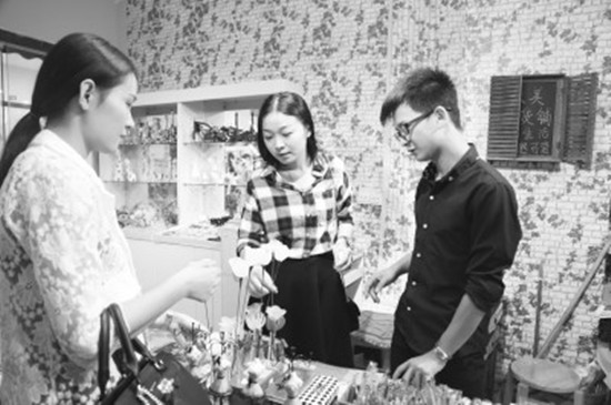 长江日报讯(记者胡琴沁 通讯员韦晴 罗袁璐)“本月利润额突破两万了。”昨日,武汉工商学院大二学生柯焱清算完账后,激动地跟店员分享。凭借打工、众筹得来的5万元钱,经过4个月的经营,柯焱在黄家湖东澜岸商业区开办的女生精品店终于有了不错的收入。店里柯焱自制的精美手工艺品也相当受追捧,让众多女顾客自叹不如。