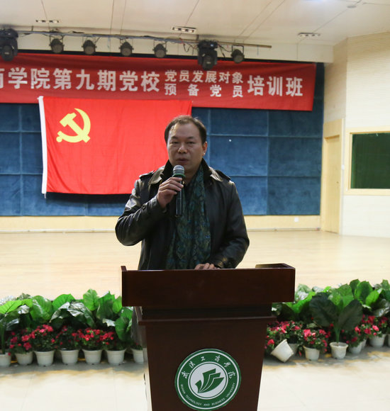 新闻中心讯(记者 汪馨羽)11月16日晚7:00,武汉工商学院第九期党校开学典礼在体育馆学术报告厅举行,本期党校包括党员发展对象和预备党员共339名学员,该校党委书记陈伟以《“十三五”发展与当代青年责任》为主题为学员们讲授第一课,党委组织部部长王曼主持典礼。