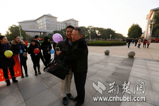 荆楚网消息(通讯员 吴田芳 陈谦)“老师辛苦了,我们给您一个拥抱!”11月26日早上8点,武汉工商学院120名青年马克思主义研究会成员手捧鲜花,列队站在该校综合楼广场和外语楼大门,向过往的老师送上拥抱、鲜花,并大声地喊出“老师辛苦了!”