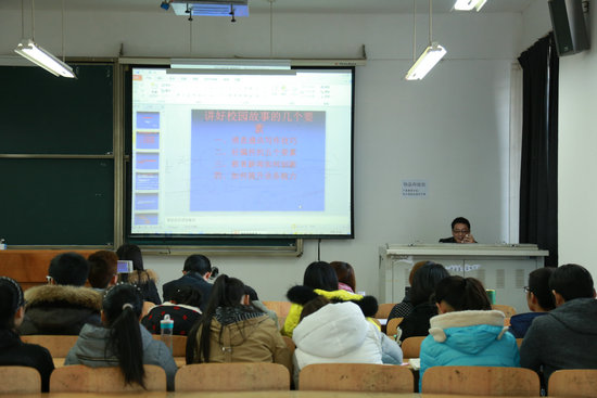 新闻中心讯(见习记者 何雨)“新闻工作者要成为一个会讲故事的人”。11月26日下午2:00,《中国教育报》主任记者程墨应邀来到武汉工商学院综合楼209教室,为该校新闻中心记者团、电视台、广播台学生记者做了一场主题为“如何讲好校园故事”的讲座。讲座由该校宣传策划部副部长蓝静主持。