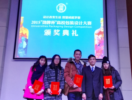 劲牌公司设计部王贤部长(右二)与获奖师生合影