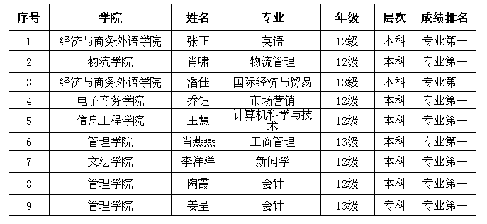 新闻中心讯(特约记者 海鹏)12月15日,武汉工商学院2014-2015学年度国家奖学金发放工作顺利完成,全校共9名学生收到了这笔国家资助资金。
