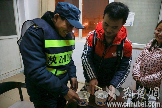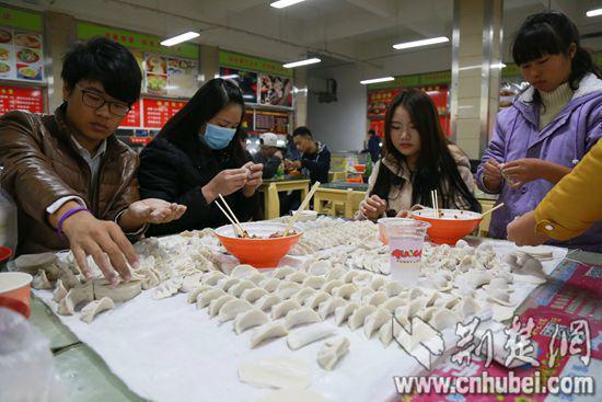 荆楚网消息(通讯员 胡松涛)“门卫叔叔,您辛苦了!”“阿姨,我们来给您送饺子了,提前祝您元旦快乐!”12月26日晚7时许,武汉工商学院宿管、门卫室内阵阵欢声笑语,由该校管理学院青年志愿者协会组织的“冬季送温暖”活动正在火热进行。
