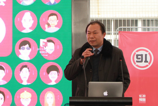 陈伟书记致开幕词,他首先感谢各位嘉宾光临本次交流盛会,他说,此次活动诚邀了50位华中设计精英,入伙华中“创谷”创意创业导师团队,汇聚华中最优秀设计师、商界精英,以“校企合作无缝对接”为己任,共铸创新、专业、智慧、交流、分享、商务的平台。他还指出,虽然各大高校早已开展实践教育,但高校和企业始终有难以逾越的鸿沟。学生找不到工作,企业招不到合适的人才,这已然是老生常谈的现实问题。武汉工商学院艺术与设计学院坚持全面倡导创新教育改革,开创设计教学新常态,建立名师定制课程、项目引导课程、企业应用课程,真正的缩短高校和企业间的鸿沟。