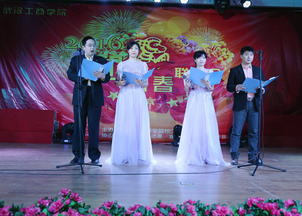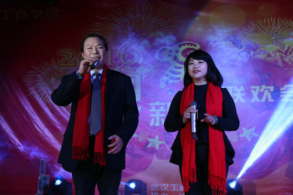 新闻中心讯(记者 胡松涛)羊随新风辞旧岁,猴节正气报新春。1月7日下午2:30,武汉工商学院学术报告厅内灯光璀璨、热闹非凡,该校2016年教职工迎新春联欢会在此精彩上演。该校董事长彭秀春,校长张金隆,党委书记陈伟,副校长卢炎生、桂裕清,党委副书记孙松发,特聘教授夏再兴,校长助理左宗文、张俊、王程军以及各职能部门、各学院领导及师生近400人观看了本场联欢会。