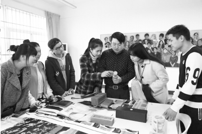 中国教育报讯(通讯员 王庆/文 王铖焱/摄)“利用创客思维,将艺术品通过综合挑选、组合、再生等方式提炼出作品中的独特元素,让其‘飞入’寻常百姓家,引导大众艺术消费,普及大众生活美学。”这是武汉工商学院艺术与设计学院教师何轩的专业思考。日前,何轩设计的“邱汉桥绘画作品衍生品”,包括手机支架、艺术画面伞等,在中南六省区“中南星奖”设计艺术大赛中获得金奖。