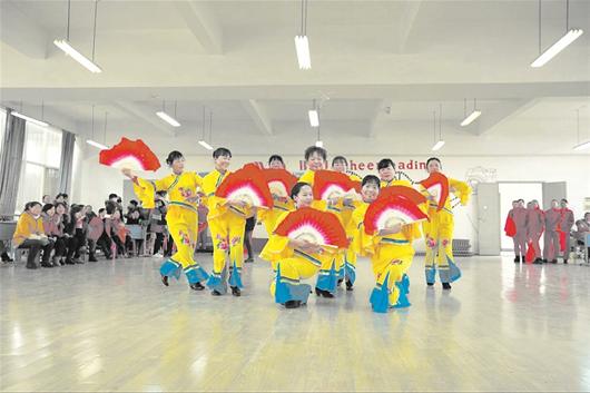 楚天金报讯(记者宋锐 通讯员李洋洋 王铖焱摄影报道)昨日下午,武汉工商学院在该校体育中心开展了首届社区舞蹈培训班汇报演出,洪山区黄家湖社区、红霞社区、青菱社区、建阳社区的大妈们和学校后勤、体育教研室的教工们齐聚一堂“比舞”迎新春。