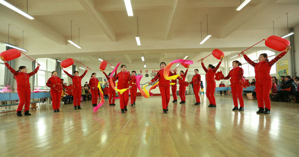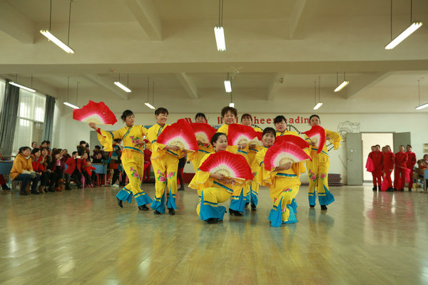 新闻中心讯(记者 李洋洋)1月14日下午2:30,武汉工商学院在该校体育中心舞蹈室开展第一届社区舞蹈培训班汇报演出暨2016年新春联谊会,位于洪山区的黄家湖社区、红霞社区、青菱社区、建阳社区的大妈们和学校后勤、体育教研室的教工们在此齐聚一堂用舞姿喜迎新春。这是该校与洪山区青菱街开展区校合作的初步成果。