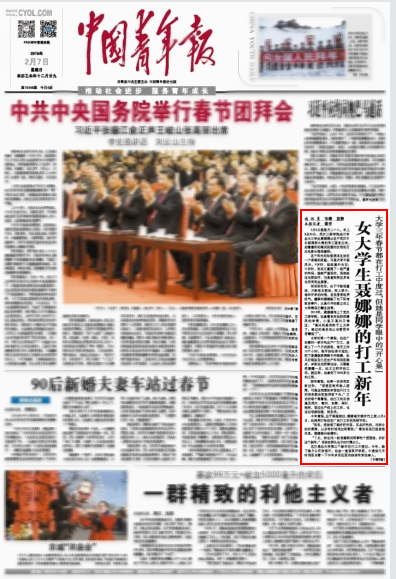 这已是她大学第三个新年在打工中度过。今年,除了除夕公司放假外,她会一直做到开学前,中途抽几天时间回去看一下半年多没见面的妹妹和其他亲人。