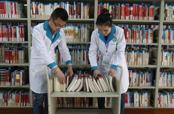 天蓝色的衣领,修身束腰,长款及膝,该校图书馆管理员的工作服乍一看就像一件时尚的风衣。“这个工作服一穿上,腰身就马上显了,女同志穿起来显得亭亭玉立,男同志穿起来显得精神干练,比以前的白大褂漂亮多了”,图书馆管理员卢江丽说,“穿得漂亮,工作起来觉得更精神,更舒心,也可以给读者们留下更好的印象。”