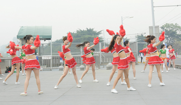 湖北教育新闻网:武汉工商学院啦啦队助力“汉马”