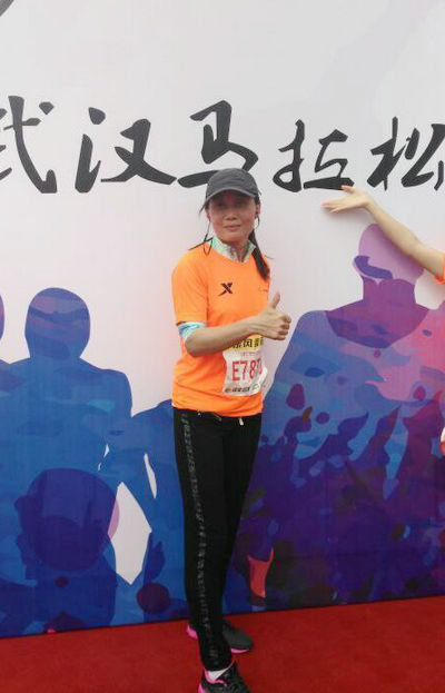 王翃常常教导学生要坚持体育锻炼,提高身体素质,她自身也十分热爱体育运动,每周至少会进行两次1500m长跑运动和羽毛球训练,每年都会和学校体育教研室的老师参加湖北省高校体育教师羽毛球团体赛,并获得过一次团体冠军,一次团体亚军,两次团体季军。谈及为何想到参加“汉马”,王翃笑着说:“比赛地点就在武汉,作为土生土长的武汉人肯定是想体验一番的。另外我本身就热爱体育运动,正好借这个机会锻炼自己。”