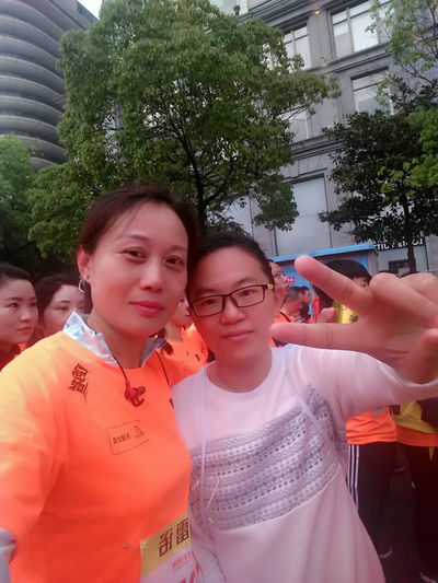 王翃老师在比赛前与朋友合影 王翃老师赛后留念