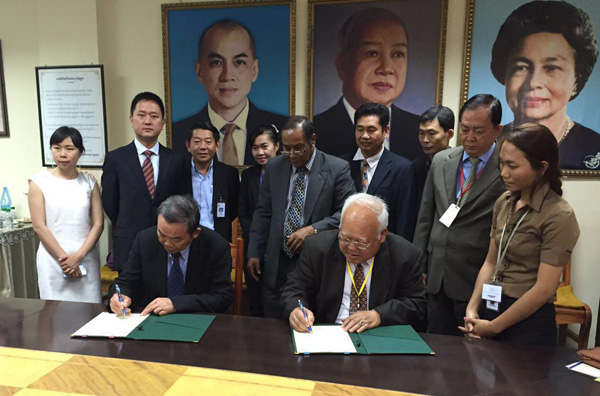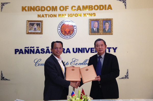管理学院院长张兆国与柬埔寨智慧大学暹粒校区校长Phann Keara 签署合作备忘录 摄影:马冬玲