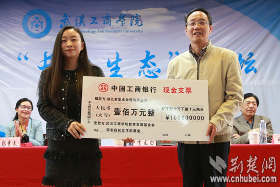 湖北君集水处理公司向武汉工商学院捐赠100万元,设立李圭白长江生态基金 摄影:王铖焱