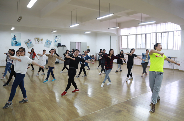 新闻中心讯(记者 胡松涛)4月20日中午1:00,武汉工商学院体育馆304舞蹈室里,一群青春靓丽、热情奔放的女生跳起了健美操,动感、欢快的舞步吸引了不少同学在此观看,这是该校健美操队正在为即将参加6月份的“全国全民健身操舞大赛”进行严格的训练。