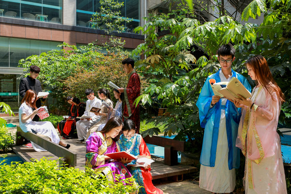 武汉工商学院物流学院的学生正在诵读典籍