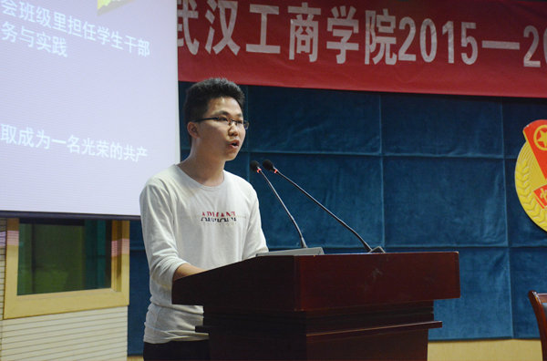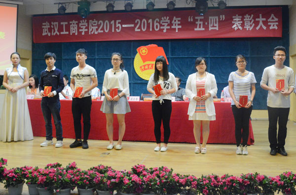 本网讯(通讯员 田爽 郑琰 ) 5月4日晚7:00,武汉工商学院2015—2016学年“五四”表彰大会在该校学术报告厅隆重举行。该校校长张金隆,党委书记陈伟,党委副书记孙松发,特聘教授夏再兴,校长助理左宗文、张俊,学工部部长陈义文以及各学院党总支书记、分团委书记、辅导员出席会议,300多名学生代表参会。会议由校团委书记吴艳主持。