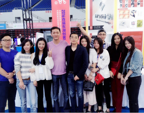 湖北教育新闻网讯(特约记者 丁真)5月28日,由武汉·中国光谷创客联盟、中国创客空间联盟主办的2016首届东湖创客汇暨中国创客联盟启动仪式在武汉光谷体育馆盛大开幕,省科技厅副厅长刘望清出席活动。来自国内外的创客团队们携带1000余件创新产品与市民见面。武汉工商学院艺术与设计学院创意品牌工坊的师生们带着自己的创意设计产品参加了本次活动,展品分为《武汉能》、《食色江城》、《庭院》、《醉奥运》、《甍》五个系列,包括创意地图、手机壳、明信片、动画视频等上百种不同的展品。