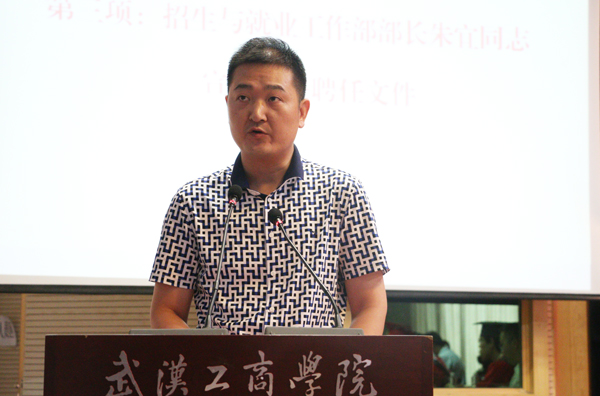 招生与就业工作部部长朱宜宣读了关于聘任部分毕业生为学校校友联络员的相关通知